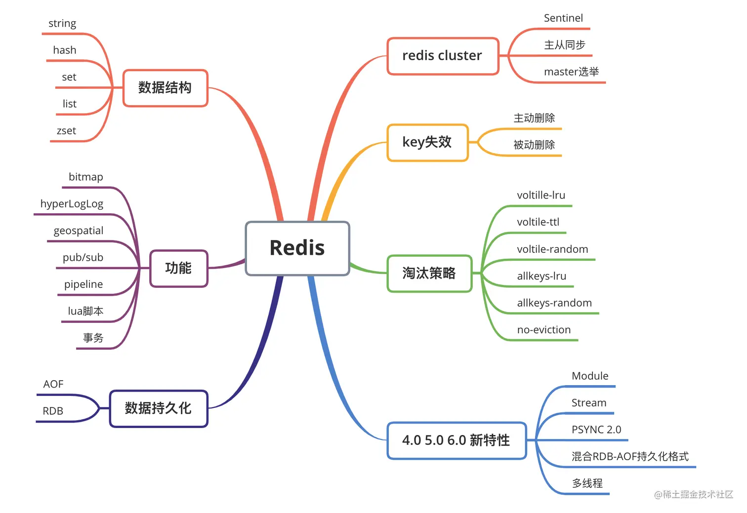 Redis支持主从同步,提供Cluster集群部署模式,通过Sentinel哨兵来监控Redis主服务器状态,当主服务挂掉后,在从节点中根据选主策略选出新主,并调整其他slaveof到新主