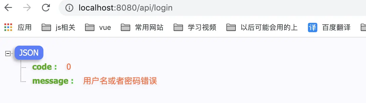- 在浏览器中输入http://localhost:8080/api/login,可以查看响应结果