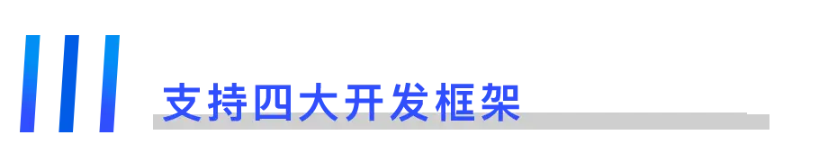 对此,京东mPaaS平台同时提供原生、跨端、H5、小程序四大成熟稳定功能强大的开发框架,可结合企业业务特点,协助企业进行深度多端开发及完善,实现一套服务多端输出,仅需一套代码,即可在安卓、iOS、H5、微信小程序等多端适用,有效提高开发协作效率。
