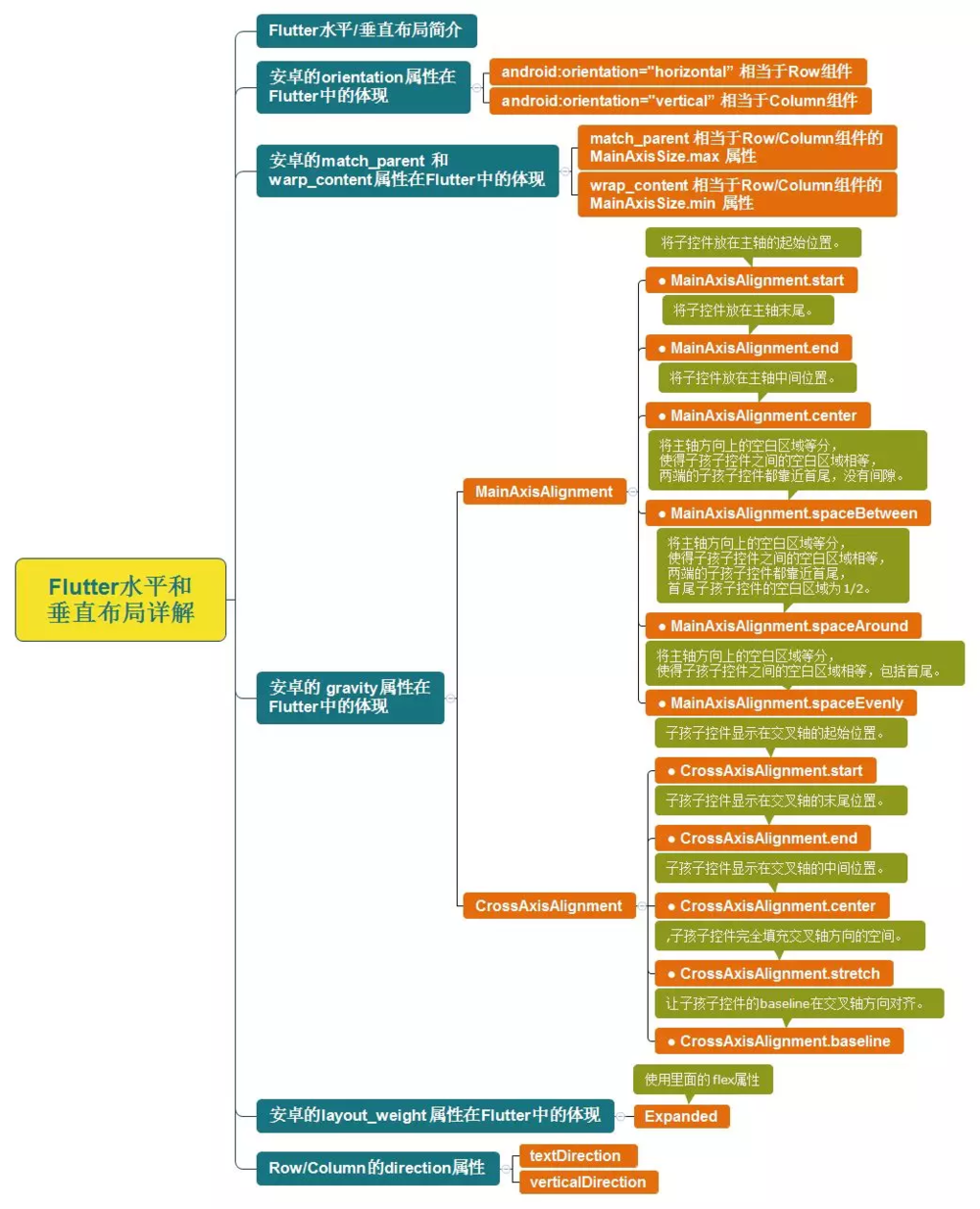 | Flutter必备-Flex布局完全解读 | 1.前言 2.Flex的属性一览 3.轴向:direction:Axis 4.主轴方向:mainAxisAlignment:MainAxisAlignment 5.交叉轴方向:crossAxisAlignment:CrossAxisAlignment 6.主轴尺寸:mainAxisSize 7.文字方向:textDirection:TextDirection 8.竖直方向排序:verticalDirection:VerticalDirection 9.基线对齐方式:textBaseline:TextBaseline 10.用Flex布局写个小例子 |