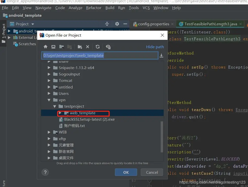 2、选择 web_template 或 android_template 即可,如图:(注:首次打开项目,会加载一些依赖包,可能会加载好一会,第二次及以后能快速打开了。)