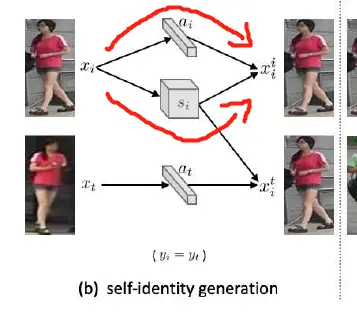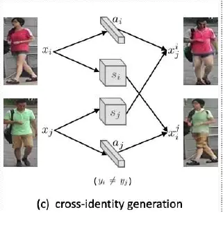 不同于自id生成,跨id生成没有pixelwise的ground truth监督,如下图2(c)