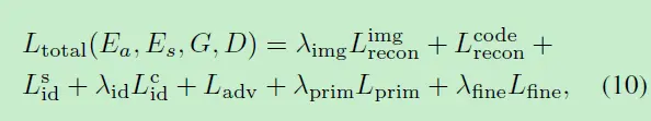 是跨id生成环节的对抗损失。等式中的λ是一个常数,代表不同项的权重,用以控制相关loss的重要程度。具体设置可以看原paper。