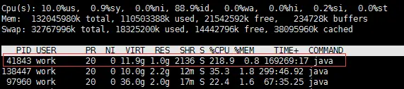 一、通过top命令定位占用cpu高的进程