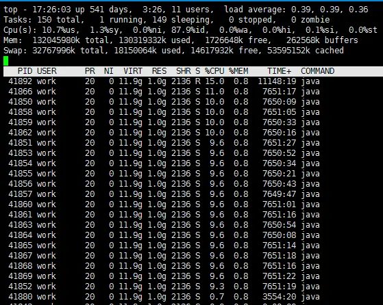 注: top -H 切换在进程列表中显示所有线程信息。