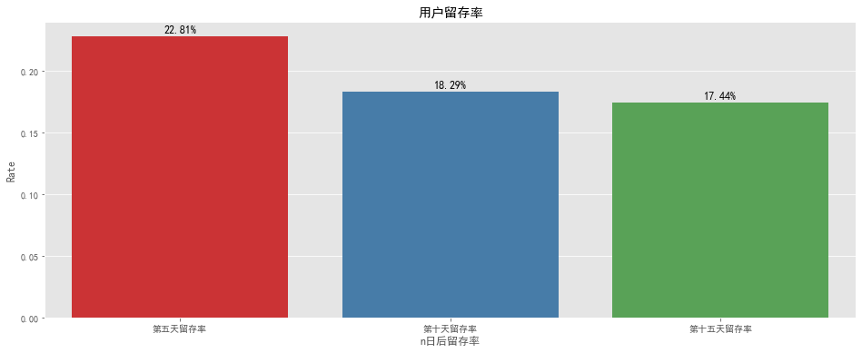 4.留存率相对稳定,为进一步提高留存率,可以定期推出秒杀活动,推出专享优惠券,推出签到有礼环节,增加用户浏览时长和深度,提高用户粘性。分析用户对产品的真实使用感受与评价,提高用户忠诚度。