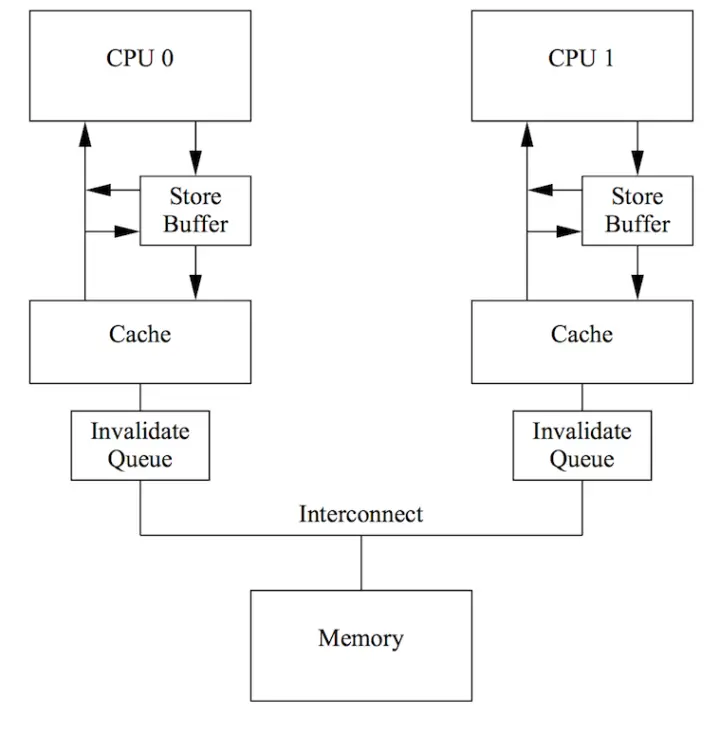 对于没有invalid queue的x86系列cpu来说,当修改从store buffer刷入cache时,就能够保证在其他核上能够读到最新的修改。但是,对于存在invalid queue的cpu来说,则不一定。