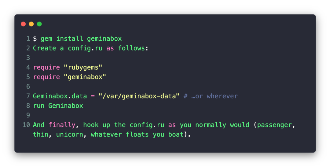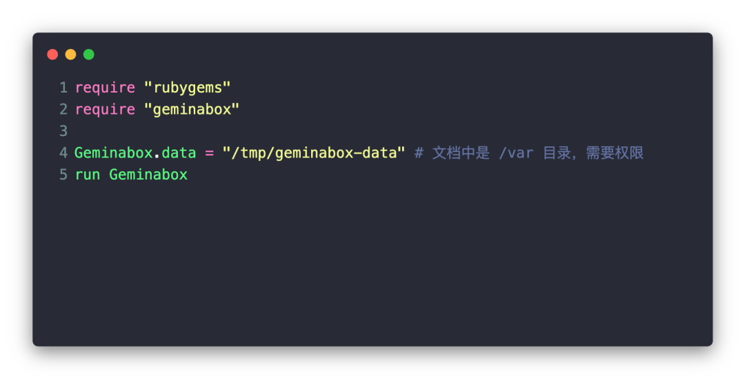 gem install geminaboxHome 目录下创建 config.ru 文件