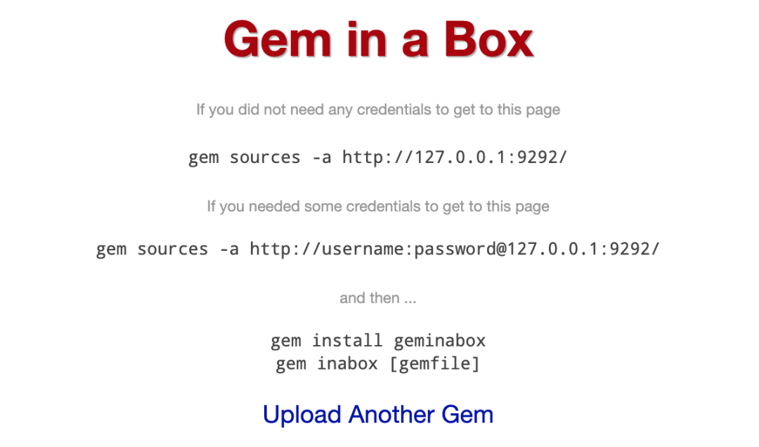 另外,也可以使用页面中 Upload Another Gem 进行可视化上传 gem。