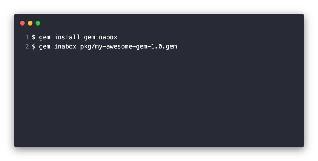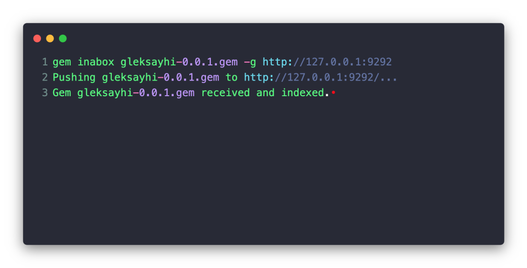gem inabox gleksayhi-0.0.1.gem # 需要输入 host,http://127.0.0.1:9292可以参考 gem inabox 文档