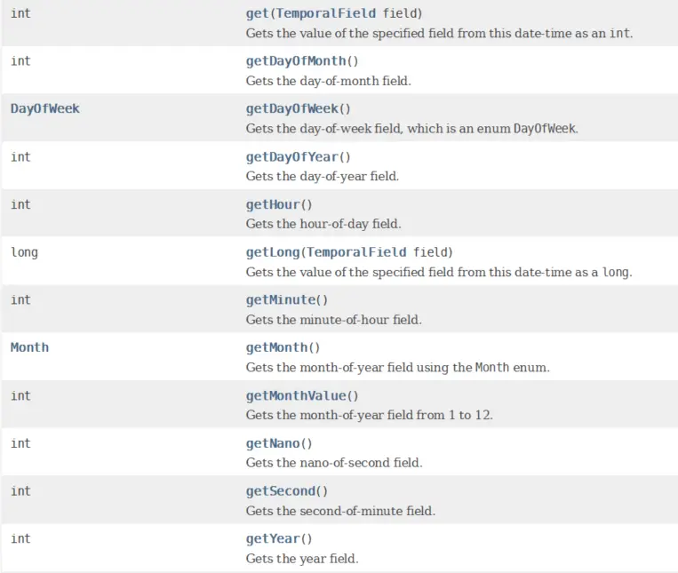 format(DateTimeFormatter formatter)对日期进行格式化until返回两个日期之间的Period对象isLeapYear判断是否为闰年