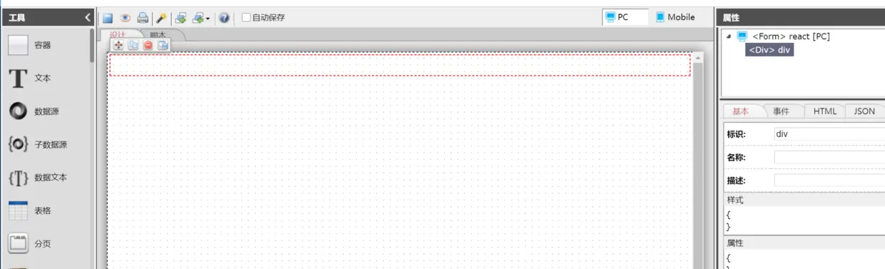 在O2平台创建一个门户,并新建一个页面。在页面中创建一个容器,标识为:"div"。
