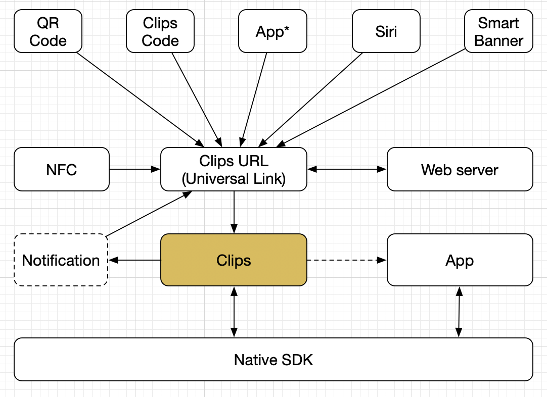 根据WWDC 2020相关Session可以得知,Clips的入口包括:NFC、QR Code、Cips Code、自家部分App、Siri、Safari的Smart Banner,还有Notification。我将这几个入口总结为:场景化入口、自有流量入口、对外扩展接口三类。