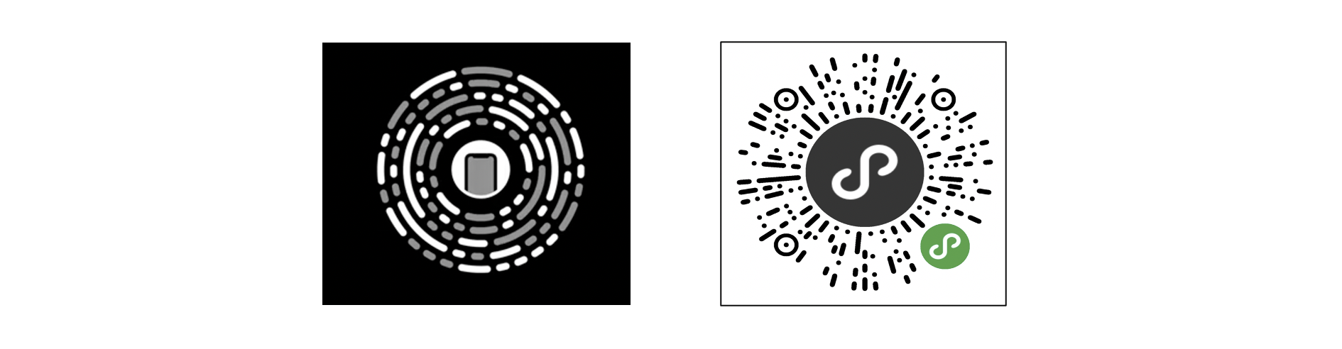 除了NFC之外,还支持通过相机扫描普通QR Code(就是二维码)和未来的Clips Code来进入Clips的方式。 指的一提的是,苹果公布的这个Clips Code长得跟微信小程序码。。。一言难尽。。。 有种同样用了摩斯密码,其中一种做成了射线,另一种做成了环。。。