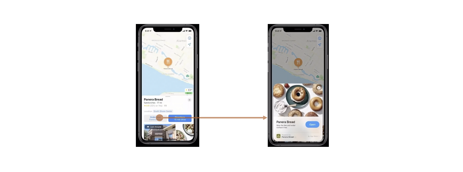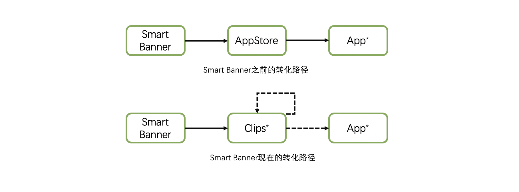 之前的Smart Banner必须要经过AppStore下载完成才能完成转化,操作步骤多(如果没登录AppStore账号的话还得登录一下),等待时间长,转化率不高; 集成了App Clips的Smart Banner可以在Clips层完成用户转化,等待时间短,用完即走,转化率高。如果用户想要体验完整版应用,还能自行完成到App的转化。提高了Smart Banner的利用率。