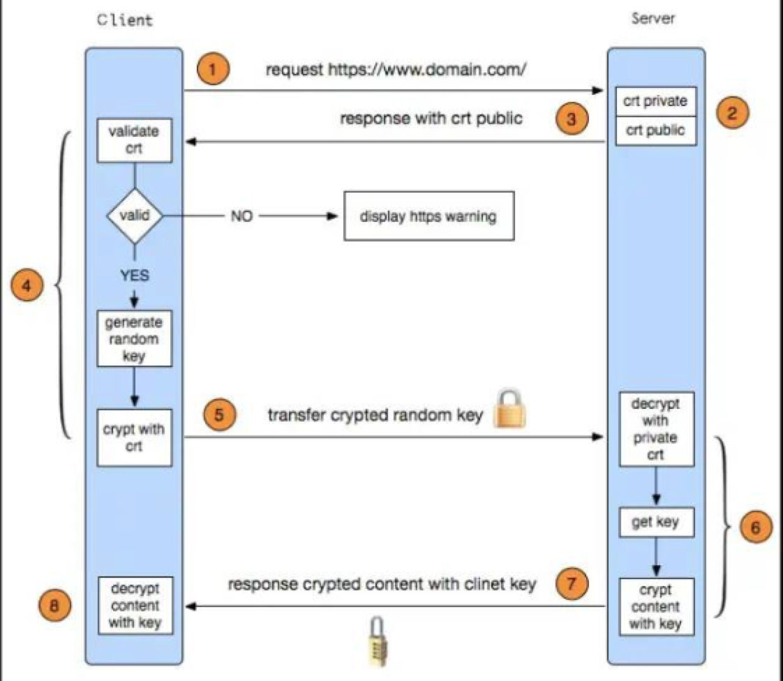 - 客户端收到服务器端的证书之后,会对证书进行检查,验证其合法性,如果发现证书有问题,那么HTTPS传输就无法继续。严格来说,这里应该是验证服务器发送的数字证书的合法性,如果公钥合格,那么客户端会生成一个随机值,这个随机值就是用于进行对称加密的密钥,我们将该密钥称之为client key,即客户端密钥,这样在概念上和服务器端的密钥容易进行区分。然后用服务器的公钥对客户端密钥进行非对称加密,这样客户端密钥就变成密文了,至此,HTTPS中的第一次HTTP请求结束。