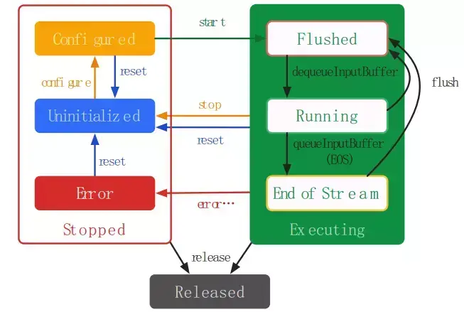 MediaCodec的声明周期有三种:Stopped、Executing、Released