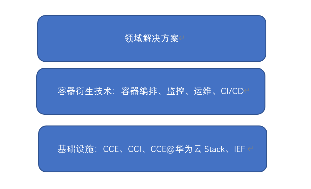 具体来看,华为云全栈容器服务大致可以分成三层:基础设施层、容器相关衍生技术以及适合领域解决方案和产品。
