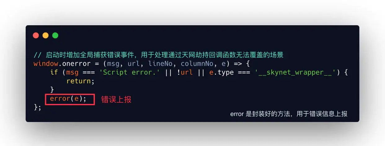 监听 / 劫持 原始方法,获取需要上报的数据,在错误发生时 触发 函数使用 gif 上报。