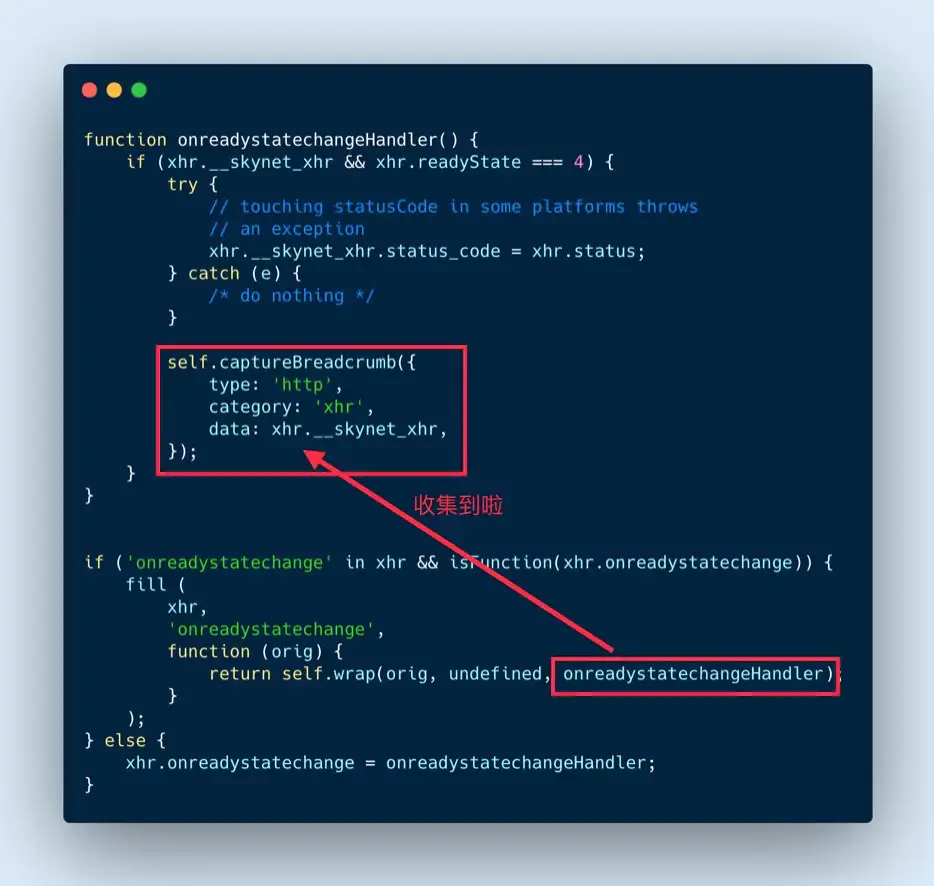监听 XMLHttpRequest 对象的 onreadystatechange 回调函数,在回调函数执行时收集数据。 不管使用的 axios 还是 fetch,底层其实都是走得 XMLHttpRequest,所以不同担心你使用的请求行为捕捉不到!
