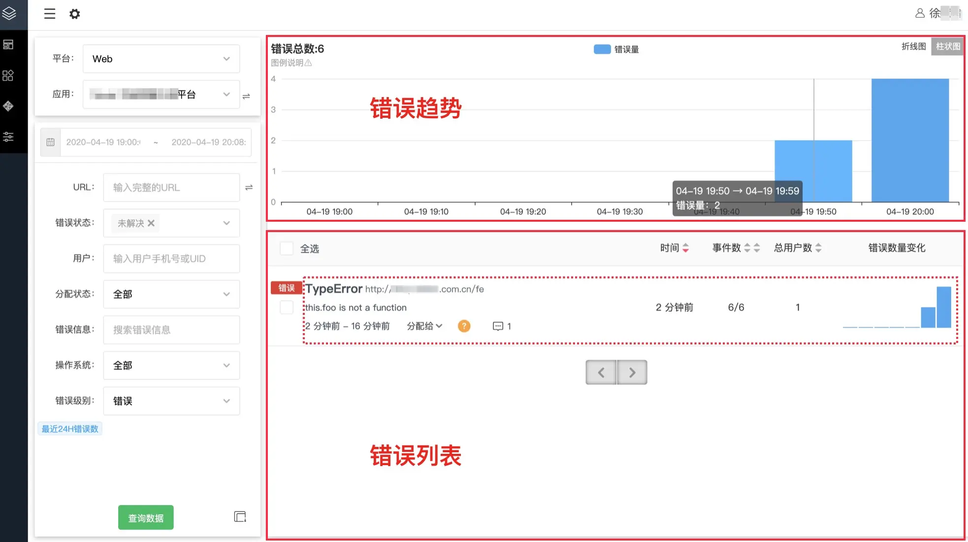 我们从三个维度来做:1、业务名;2、错误类型;3、错误信息