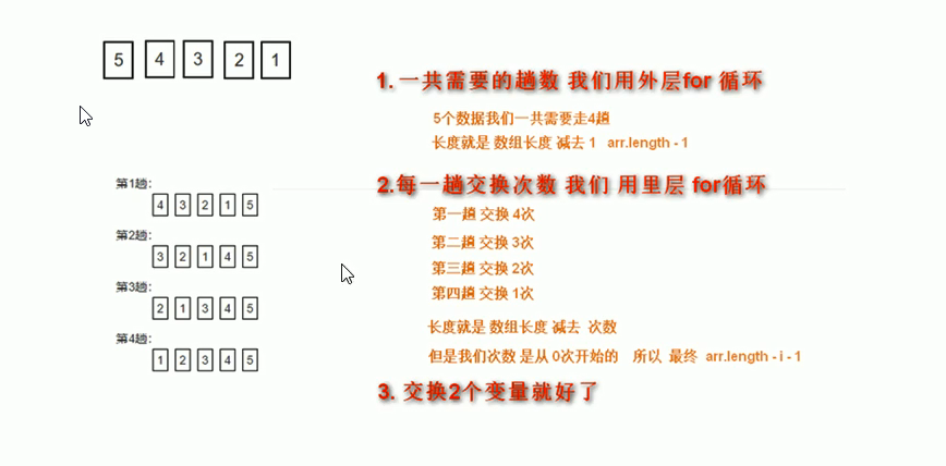 for (var i = 0; i <= arr.length - 1; i++) { //外层负责趟数