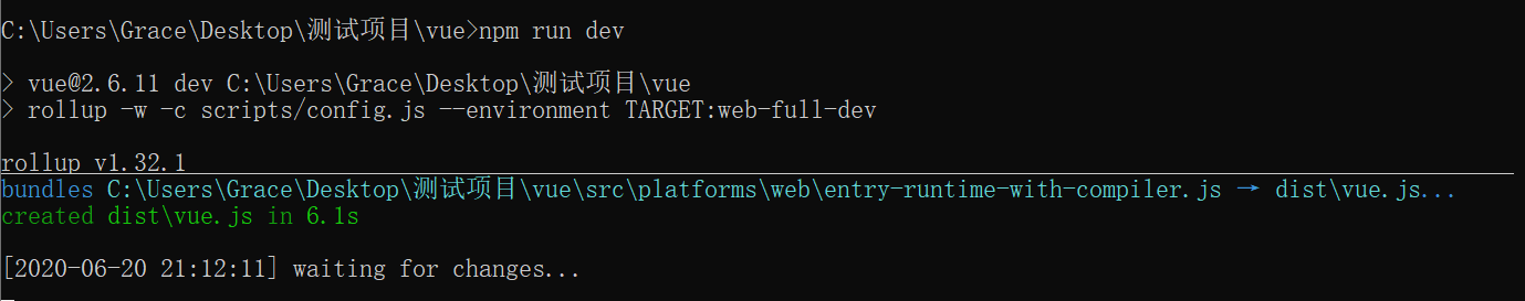 //进入rollup-plugin-alias目录 cd C:\Users\Grace\Desktop\测试项目\vue\node_modules\rollup-plugin-alias //安装依赖 npm install //打包 npm run build -