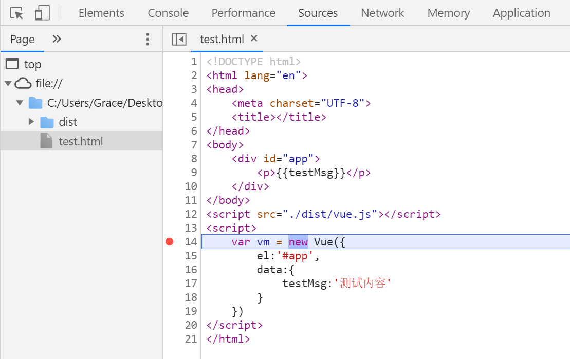 新建index.html引入dist/vue.js就可以在浏览器debug了