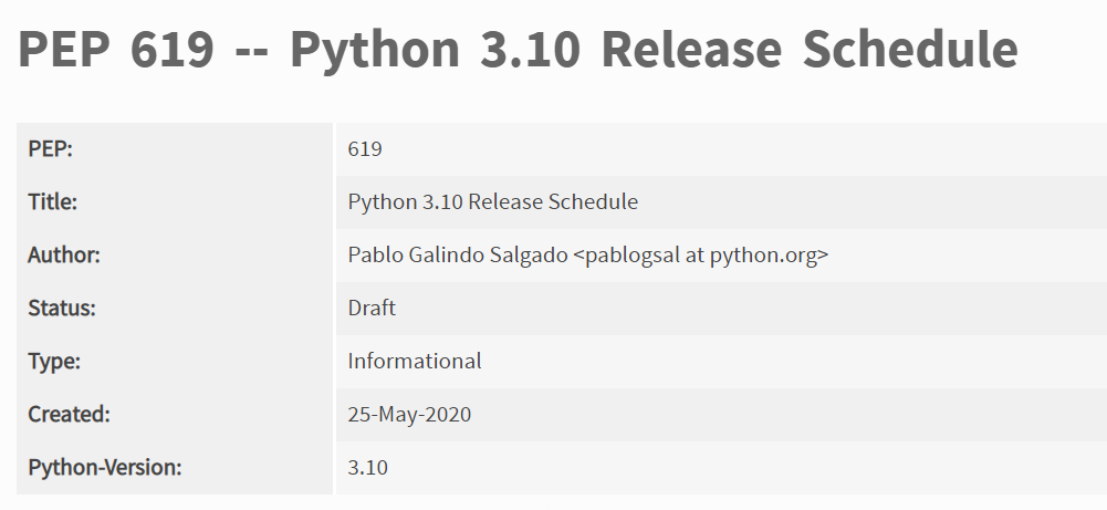 在上个月末(即 5 月 25 日),Python 官方公布了 3.10 版本的发布计划: