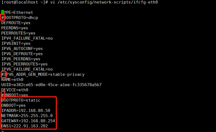 IPADDR=192.168.80.50 #设置的静态IP地址 参数来源图1中的inet
