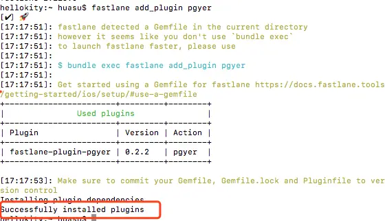 - 安装蒲公英的 Fastlane 插件,终端输入以下命令安装 蒲公英 插件