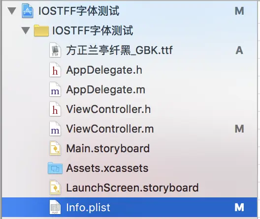 2.在 info.plist文件中告诉系统你想连接导入的字体文件