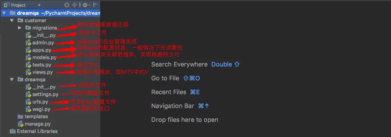 如图,为纯净Django项目的目录结构。