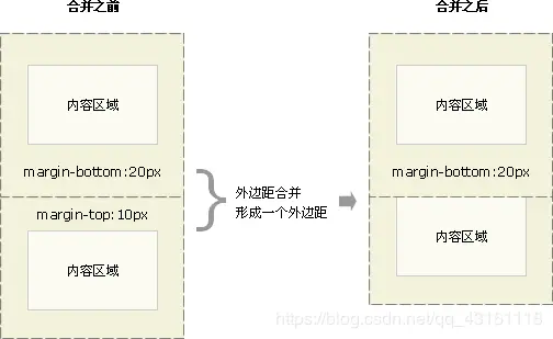 垂直排列的两个块元素,分别给上面的盒子加向下的外边距和给下面的盒子加向上的外边距,此时会造成外边距合并。