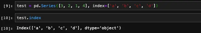 索引是Series构建函数当中的一个默认参数,如果我们不填,它默认会为我们生成一个Range索引,其实也就是数据的行号。我们也可以自己指定数据的索引,比如我们在刚才的代码当中加入index这个参数,我们就可以自己指定索引了。