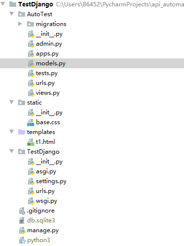 现在我们打开AutoTest目录下的models.py文件,这是我们定义Autotest数据结构的地方。打开TestDjango/AutoTest/models.py 文件进行修改: