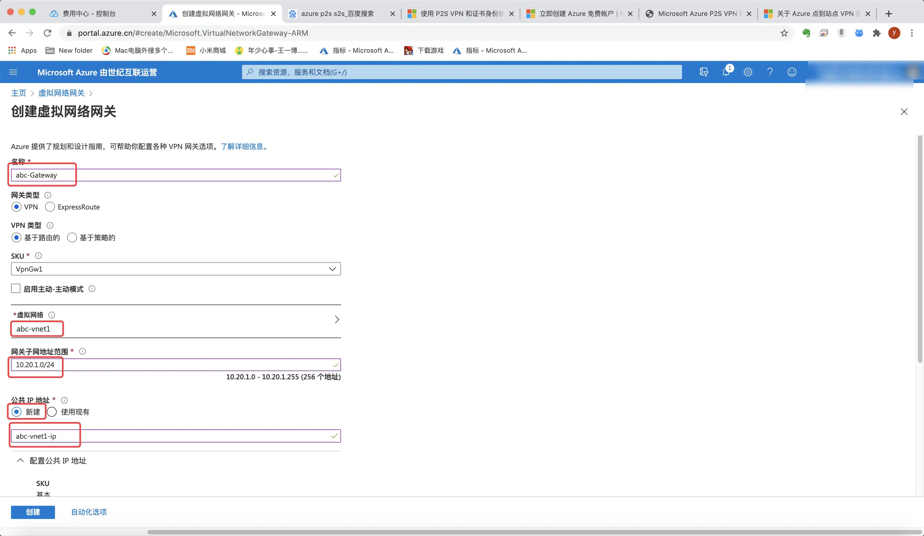 三、创建虚拟网络网关