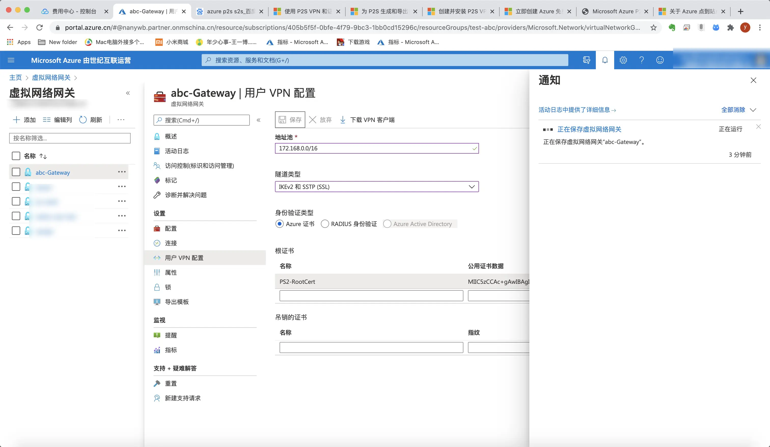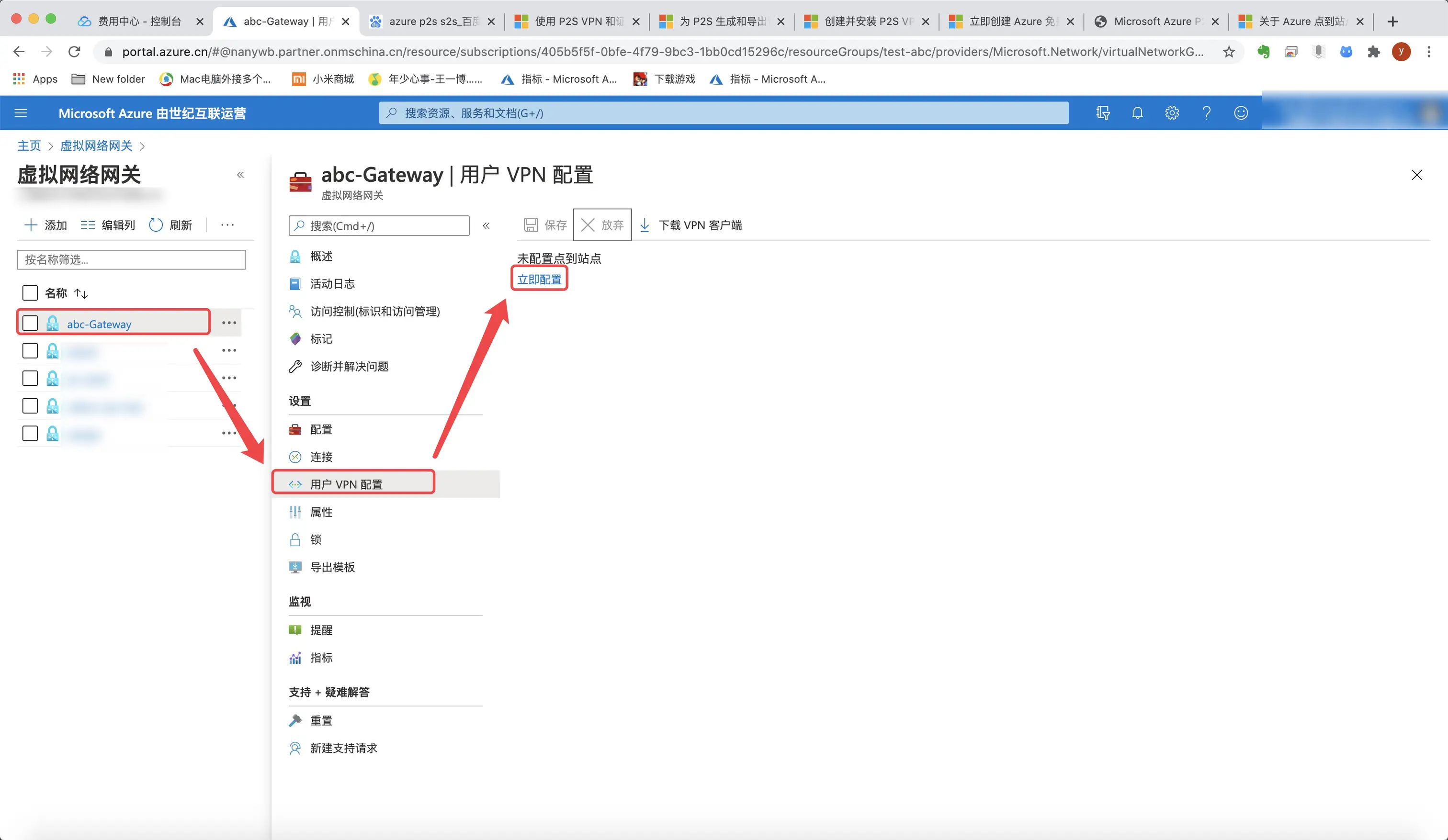 42.点击abc-Gateway虚拟网络网关→用户vnp配置,立即配置。