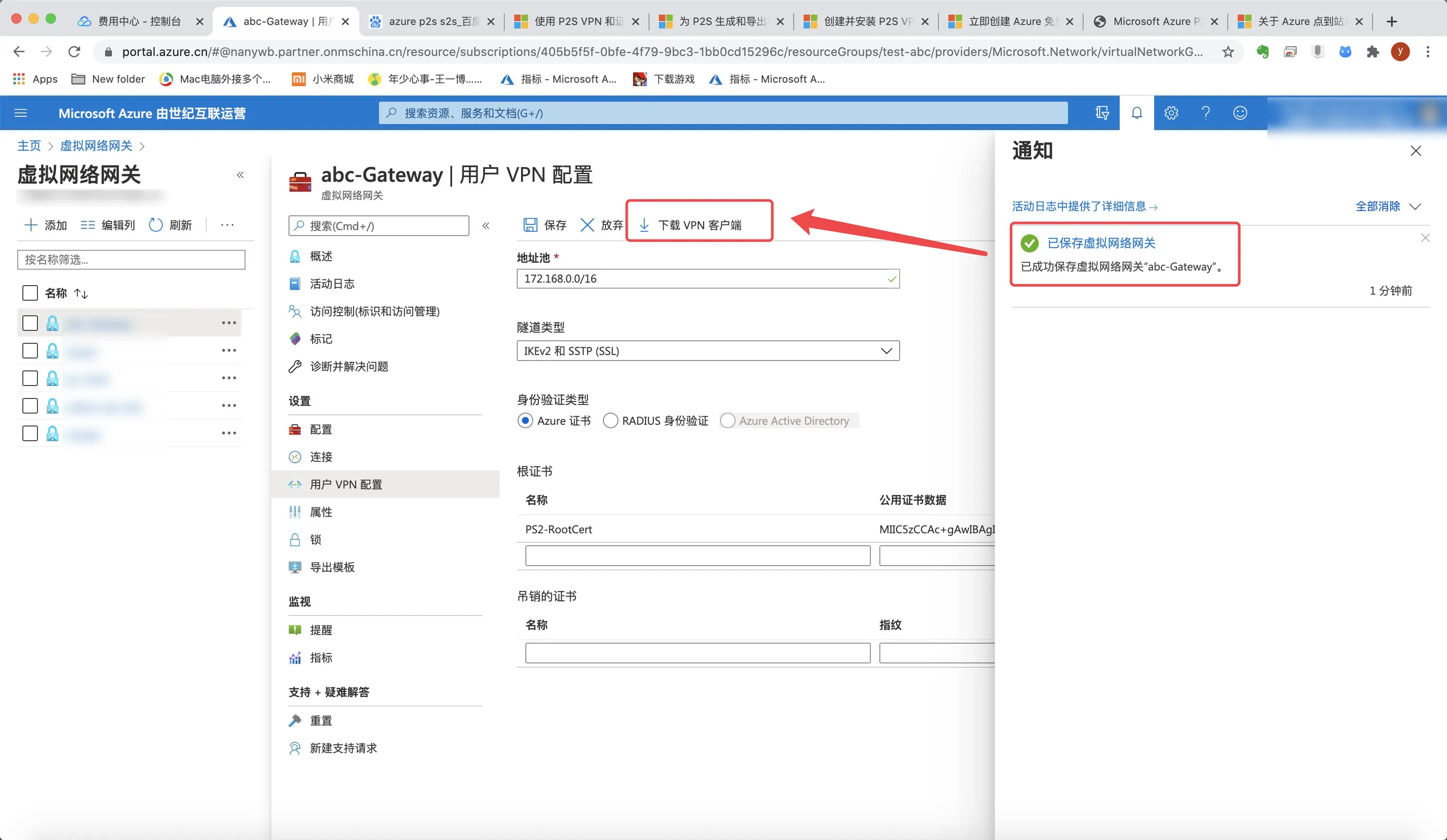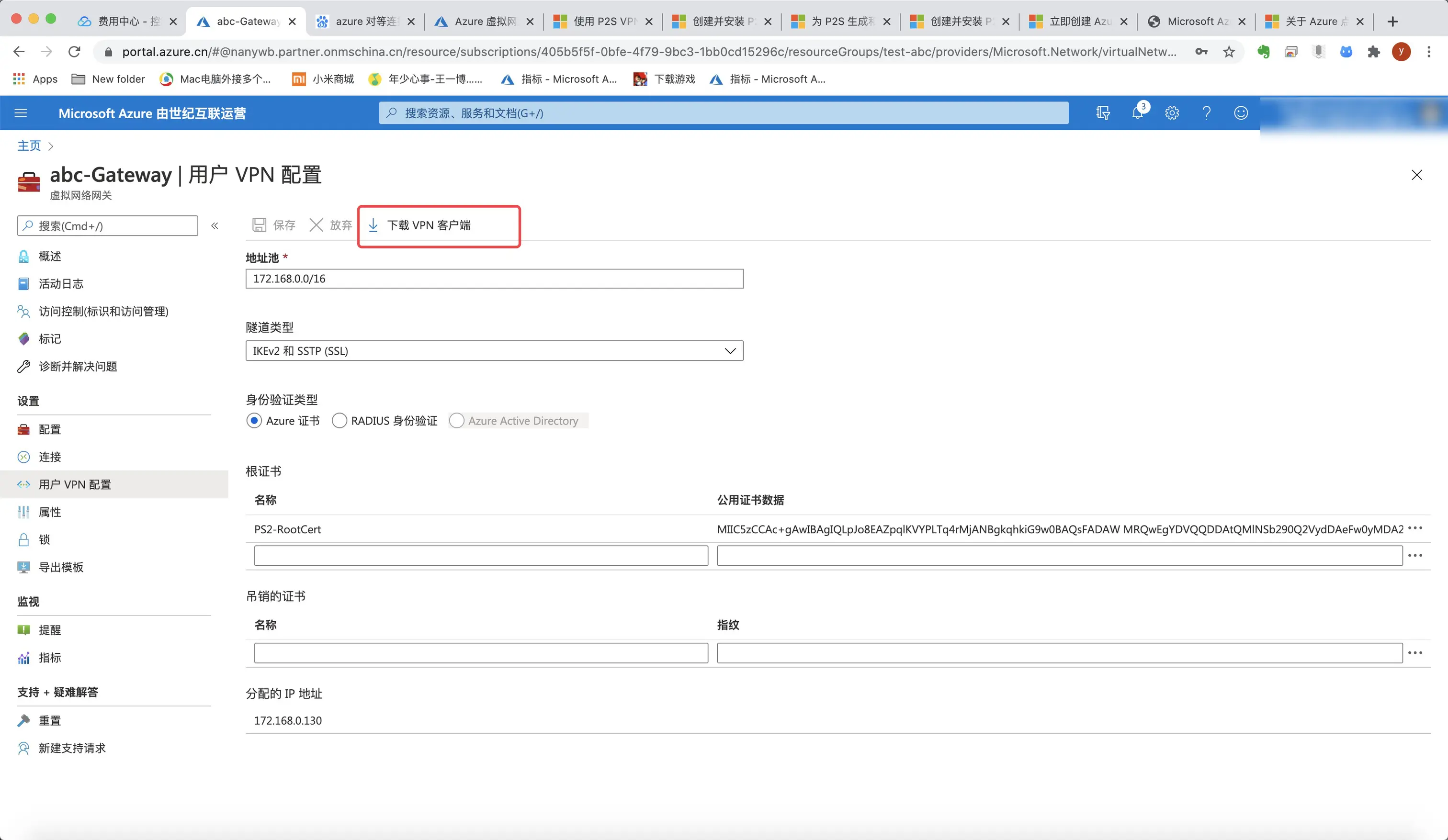 60.回到虚拟网络网关,再次 下载vnp客户端,安装,连接vnp。