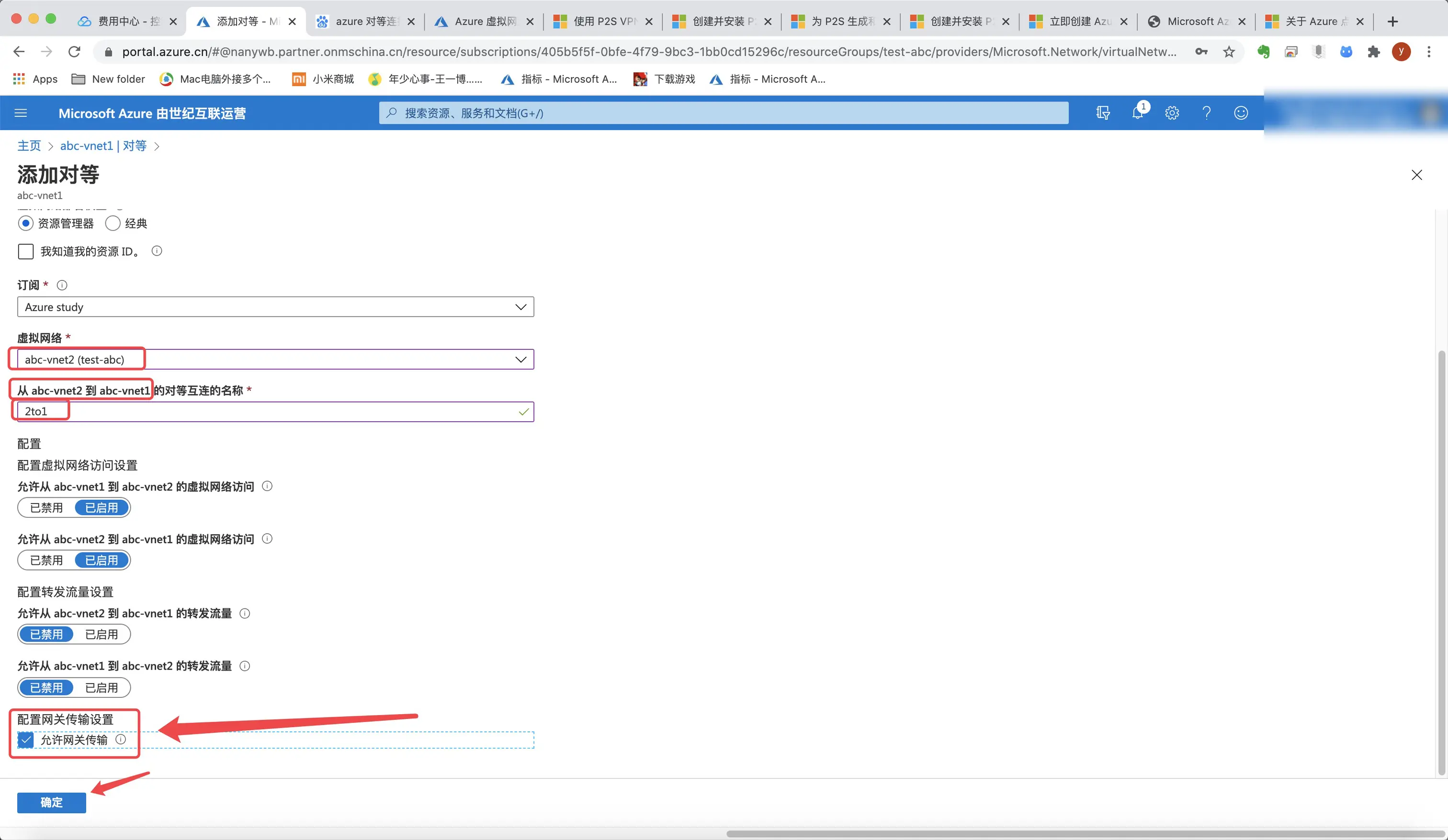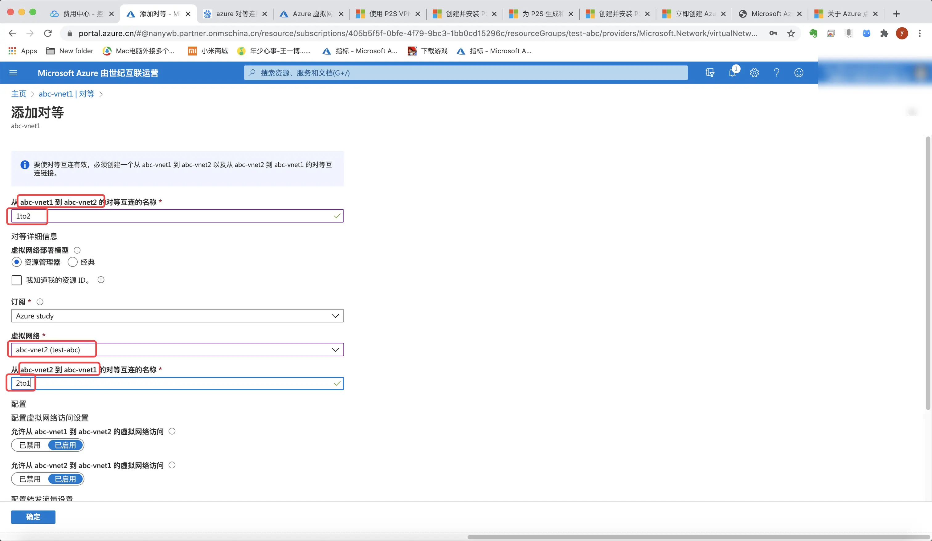 P2S及peering实战操作:通过微软Azure创建两个云上虚拟网络Vnet1和Vnet2,并且在Vnet1与Vnet2之间做对等连接,添加Vnet1到Vnet2的下一跳路由使得用户可不经过Vnet1直接访问Vnet2。