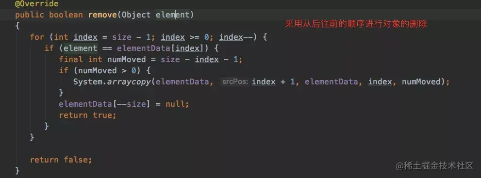 我们可以看到,FastList改造了remove(Object)方法,采用从后往前的顺序进行对象的删除
