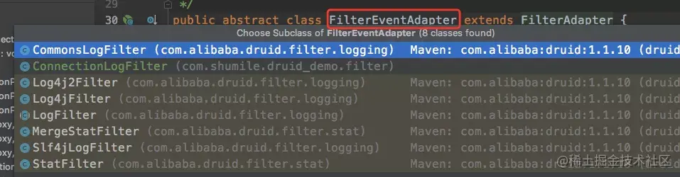 如果我们要实现功能扩展的话,也只需要同样继承FilterEventAdapter,实战环节会有扩展示例哦~
