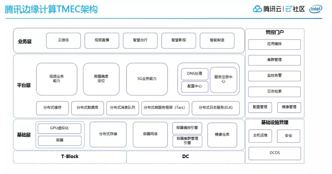 最下是基础层,它是 TMEC 平台的基础支撑,我们采用腾讯云自研的容器平台TKEStack来实现。