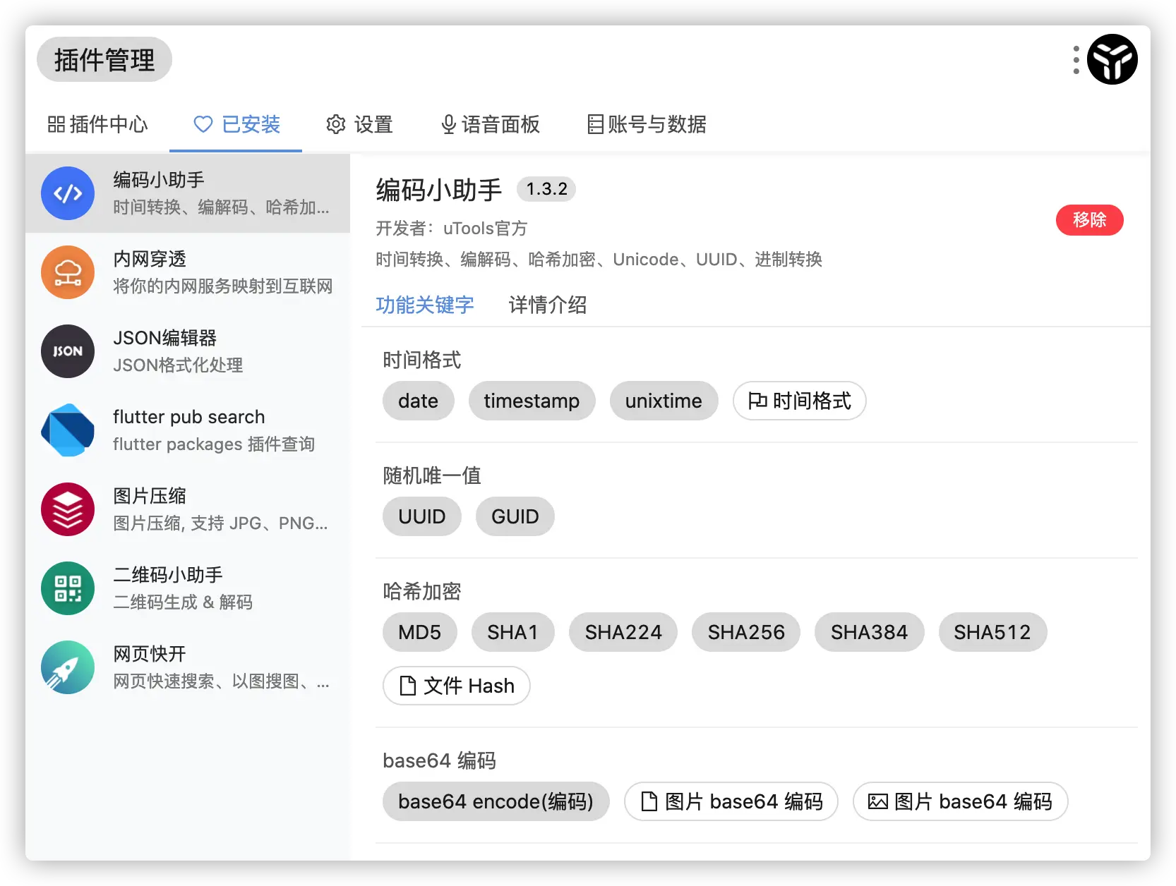 uTools是一个极简、插件化、跨平台的现代桌面软件。通过自由选配丰富的插件,打造你得心应手的工具集合。当你熟悉它后,能够为你节约大量时间,让你可以更加专注地改变世界。- 上面有方便开发人员使用各种各样的插件,比如解码编码器,json编码器,以及各种开发文档,对于
