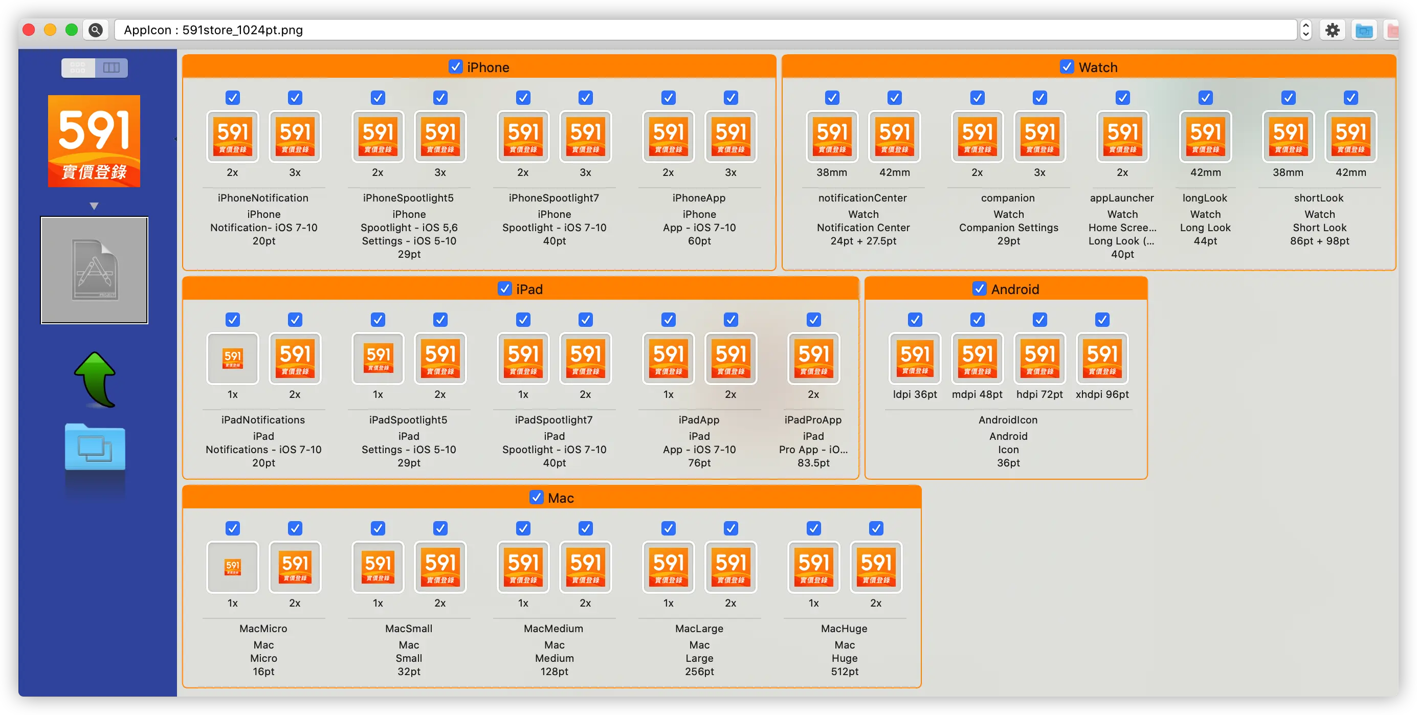 App Icon Gear图标切割神器,只需一张1024pt图片,非常方便我们一键导出所有尺寸的icon图
