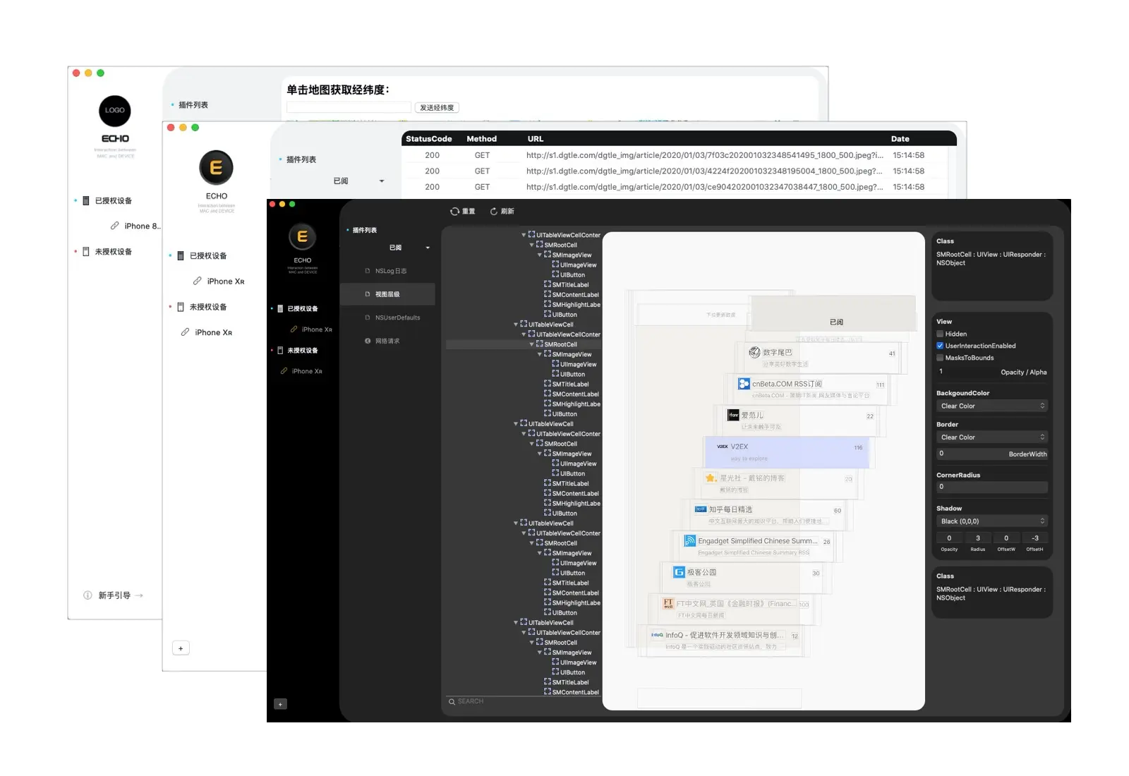 Echo是一款客户端的桌面端调试工具,中文意思回声,寓意着Mac端和手机端之间就像回声一样相互联动。