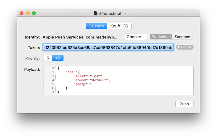 iOS 苹果推送测试工具, Mac OS 下的 apns 测试工具 ,类似的还有 SmartPush