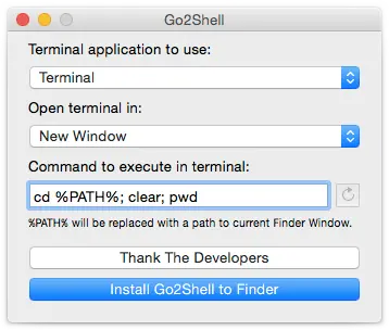 Go2Shell是一个可从Finder窗口在所需位置打开终端的工具。