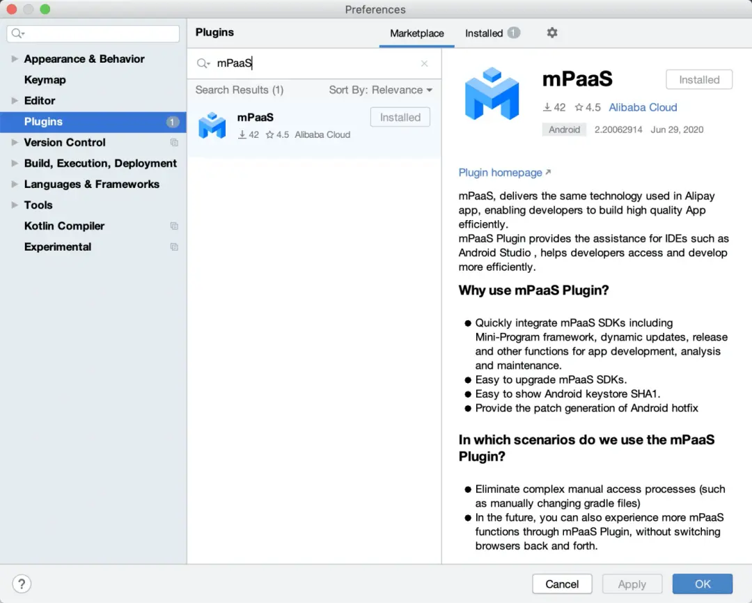 今天 mPaaS 插件终于正式上架 Jetbrains Market Place 啦!!!