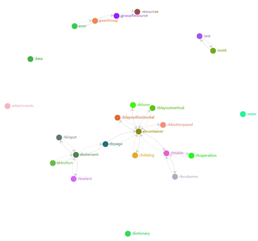 2.球和球中间的线,代表的是模型和模型的关系。实线代表的是一对多,虚线代表的是多对一,多对多通过中间模型来实现。